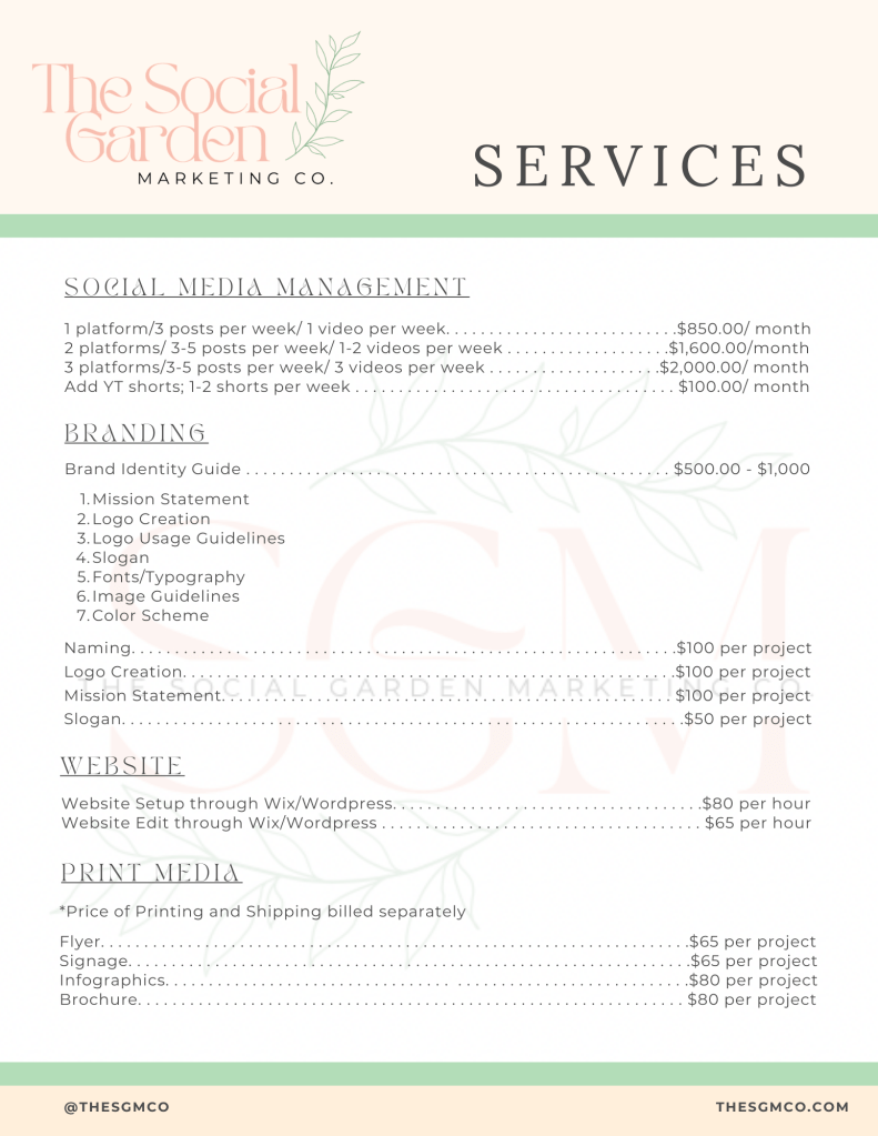 At The Social Garden Marketing Co., we offer a range of services designed to help brands grow and succeed, right where they’re planted. Our goal is to educate and empower our clients, guiding them toward long-term success in their marketing endeavors through personalized consulting, while still providing the services they need to achieve immediate results.
